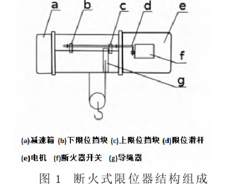 防爆鋼絲繩電動葫蘆是易燃易爆工廠中常用的起重設備,它的應用可以避免工廠內在從事起重吊裝作業過程中因摩擦而產生火花,再進一步避免火災爆炸事故的發生。在鋼絲繩電動葫蘆的零部件中,斷火式限位器又處于一個非常關鍵的位置。